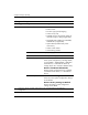Computer Setup (F10) Utility Computer Setup (Continued) Heading Option Advanced* (continued) PCI Devices *For advanced users only. Description • Lists currently installed PCI devices and their IRQ settings. • Allows you to reconfigure IRQ settings for these devices or to disable them entirely. These settings have no effect under an APIC-based operating system. Bus Options On select models, allows you to enable or disable: • PCI SERR# Generation.