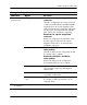 Utilitário Computer Setup (F10) Computer Setup (Continuação) Cabeçalho Opção Descrição Avançadas* (continuação) Opções de dispositivos (continuação) Permite definir: *Apenas para utilizadores avançados. • A memória cache do processador (activar/desactivar). • Padrões de intermitência exclusivos dos estados de suspensão. Permite escolher o padrão de intermitência do LED que identifica exclusivamente cada estado de suspensão.