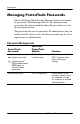 Introduction Password Management (Continued) ProtectTools Password Credential Manager logon password Set in this ProtectTools Module Credential Manager Function This password offers 2 options: • It can be used in place of the Windows logon process, allowing access to Windows and Credential Manager simultaneously. • It can be used in a separate logon to access Credential Manager after logging on to Microsoft Windows.