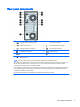Front panel components Drive configuration may vary by model. Some models have a bezel blank covering the optical drive bay. 1 Slim Optical Drive (optional) 5 Headphone Connector 2 Dual-State Power Button 6 SD Card Reader 3 USB 2.0 Ports (black) 7 Hard Drive Activity Light 4 USB 3.