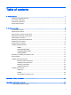 Table of contents 1 Product features ................................................................................................................................................ 1 Standard configuration features ........................................................................................................... 1 Front panel components ....................................................................................................................... 2 Rear panel components ...................