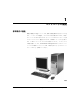 1 コ ン ピ ュ ー タ の機能 標準構成の機能 縦置き/横置き共用型コンピュータは、簡単に横置き構成に変えることができ ます。コンピュータの機能は、モデルにより異なる場合があります。お使い のコンピュータに取り付けられているハードウェアおよびインストールされ ているソフトウェアの一覧を表示するには、診断用ユーティリティを実行し ます(一部のコンピュータ モデルにのみ付属しています)。ユーティリティ の使用手順については、Documentation and Diagnostics CD(ドキュメンテー ションおよび診断ユーティリティ CD)に収録されている『トラブルシュー ティング ガイド』を参照してください。 縦置き/横置き共用型 コ ン ピ ュ ー タ の構成 ハー ド ウ ェ ア リ フ ァ レ ン ス ガ イ ド www.hp.