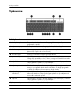 Funkcije izdelka Mesto serijske številke Vsak računalnik ima enolično serijsko številko in identifikacijsko številko izdelka, ki sta zapisani na zgornji strani računalnika. Ti dve številki imejte pri roki, ko se za pomoč obrnete na podporo uporabnikom. Mesto serijske številke in identifikacijske številke izdelka 1–6 www.hp.