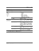 電腦設定 (F10) 公用程式 電腦設定 (續) 標題 選項 說明 整合週邊 (Integrated Peripherals) South OnChip IDE 裝置 讓您啟用 / 停用 IDE 裝置。 South OnChip PCI 裝置 讓您: • 啟用 / 停用內建 AC97 音效 • 選擇 • SATA 停用 • IDE 控制器 (非 RAID) • RAID 控制器 • 啟用 / 停用: • 內建 LAN • 內建 LAN 開機 ROM ✎ 初始顯示 讓您選擇主要的 VGA 來源。 Surroundview 只有當 PCI-E GFX 外加卡為 ATI 時,讓您啟 用 / 停用 Surroundview。 OnChip USB 控制器 啟用 / 停用 USB 控制器。 正面面板 USB 埠 啟用 / 停用正面面板 USB 埠。 內建 FDC 控制器 啟用 / 停用內建 FDC 控制器。 內建序列埠 讓您停用或選擇內建通訊埠的設定。 內建平行埠 讓您停用或選擇內建平行埠的設定。 平行埠模式 讓您選擇平行埠模式。 對特定電腦設定選項的支援,視硬體組