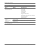 Computer Setup (F10) Utility Computer Setup (Fortsetzung) Menü Option Beschreibung PnP/PCI Configuration (Pnp/PCI-Konfiguration) (Fortsetzung) Assign IRQ for VGA (IRQ für VGA zuweisen) Aktivieren/Deaktivieren der Möglichkeit, IRQ für VGA zuzuweisen. Assign IRQ for USB (IRQ für USB zuweisen) Aktivieren/Deaktivieren der Möglichkeit, IRQ für USB zuzuweisen.