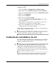 Comunicaciones por red Soporte WOL (Wake-on-LAN) El soporte WOL se puede activar y desactivar en Windows XP y Windows 2000. Para activar o desactivar el soporte WOL: Windows XP 1. Seleccione Inicio > Panel de control. 2. Haga doble clic en Conexiones de red. 3. Haga doble clic en Conexión de área local. 4. Haga clic en Propiedades. 5. Haga clic en Configurar. 6.