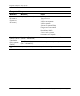 Program Computer Setup (F10) Computer Setup (pokračování) Nabídka Možnost Popis Advanced BIOS Features (Rozší ené funkce systému BIOS) (pokračování) ASF Support (Podpora specifikace ASF) Zakáže nebo povolí u systému BIOS funkci Alert Standard Format. BIOS Write Protection (Ochrana zápisu v systému BIOS) Zakáže nebo povolí upgrade systému BIOS. Advanced Chipset Features (Rozší ené funkce čipové sady) PCIB Prefetch (Funkce PCIB Prefetch) Zakáže nebo povolí funkci PCIB Prefetch.