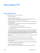 Setup-program (F10) Setup-program (F10) Använd setup-programmet (F10) för att göra följande: SVWW ● Ändra fabriksinställningar. ● Ange systemets datum och klockslag. ● Ställa in, visa, ändra eller verifiera systemets konfiguration såsom inställningar för processor, grafik, minne, ljud, lagring, kommunikation och inmatningsenheter. ● Ändra startordningen mellan startbara enheter som hårddiskar, diskettenheter, optiska enheter eller USB-flashenheter.