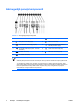 Mediju karšu lasītāja komponenti Mediju karšu lasītājs ir papildu ierīce, kas pieejama tikai dažos modeļos. Lai identificētu mediju kartes lasītāja komponentus, skatiet attēlu un tabulu. Tabula 1-2 Mediju karšu lasītāja komponenti 1 2 3 LVWW SmartMedia/xD ● 3,3 V SmartMedia karte (SM) ● D–Picture karte (xD) Mediju karšu lasītāja darbības indikators SD/MMC+/miniSD 4 Universālās seriālās kopnes (USB – Universal Serial Bus) ports 5 CompactFlash I/II 6 ● 1. veida CompactFlash karte ● 2.