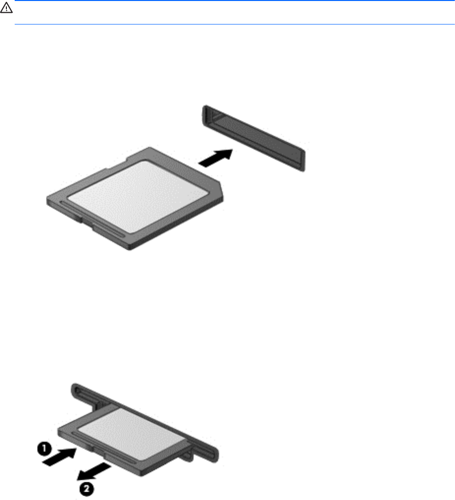 CAUTION: To reduce the risk of damage to the memory card connectors, use minimal force to
