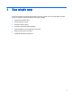 Table of contents 1 See what's new ................................................................................................................................................. 1 2 Navigating the Start screen ............................................................................................................................... 2 Locating the Start button and the Start menu ....................................................................................... 3 Shutting down the computer .......