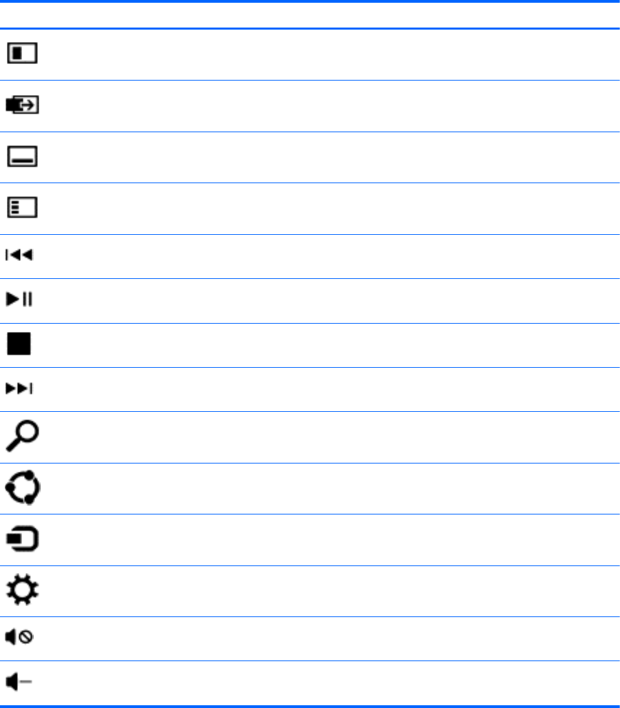 An action key performs an assigned function. The icon on each of the f1 through f12 keys, and the