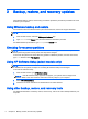 3 Backup, restore, and recovery updates The following backup, restore, and recovery procedures replace the procedures provided in the User Guide for your computer. Using Windows backup and restore For information about the Windows backup and restore features, see the HP Support Assistant. NOTE: The path to access the HP Support Assistant has changed. 1. From the Start screen, select the HP Support Assistant app. 2. Type restore in the Search field, and then follow the information provided.