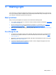 Wireless encryption uses security settings to encrypt and decrypt information that is transmitted over the network. For more information, go to Help and Support. From the Start screen, type h, and then select Help and Support. Connecting to a WLAN To connect to a WLAN, follow these steps: 1. Be sure that the WLAN device in your computer is on. 2. From the Start screen, point to the far-right upper or lower corner of the screen to display the charms. 3.