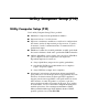 Utility Computer Setup (F10) 2 ■ Stabilire un contrassegno proprietà, il cui testo viene visualizzato ad ogni accensione o riavvio del sistema. ■ Immettere il contrassegno risorsa o il numero di identificazione della proprietà assegnato a questo computer dalla società. ■ Abilitare il prompt della password di accensione quando si riavvia il sistema (avviamenti a caldo) e anche durante l’accensione.
