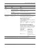 Computer Setup(F10) 유틸리티 설명서 Computer Setup(계속) 제목 옵션 설명 Advanced(고급)* (계속) *고급 사용자용 기능입니다. PCI Devices(PCI 장치) Bus Options(버스 옵션) • 현재 설치된 PCI 장치 및 이 장치의 IRQ 설정 을 나열합니다. • 이러한 장치에 대한 IRQ 설정을 재구성하거 나 모두 해제합니다. 이러한 설정은 APIC 기반 운영 체제에는 영향을 미치지 않습니다. 특정 모델에서 다음을 활성화 또는 비활성화합 니다. • PCI SERR# 생성 • PCI 구성 영역에서 VGA 팔레트 스누핑을 설정하는 PCI VGA 팔레트 스누핑 − 하나 이상의 그래픽 컨트롤러가 설치된 경우에만 필요합니다. ✎ 특정 Computer Setup에 대한 옵션 지원은 하드웨어 구성에 따라 다를 수 있습니다. Computer Setup(F10) 유틸리티 설명서 www.hp.