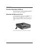 Actualizaciones de Hardware reemplazar la unidad de disquete, repita los procedimientos ✎ Para anteriores en orden inverso. Al reemplazar la unidad, transfiera los cuatro tornillos de la unidad antigua a la nueva. Los tornillos ocupan el lugar de los rieles de la unidad. Instalación de una Unidad Óptica Adicional Para instalar una unidad óptica adicional: 1. Apague la computadora correctamente a través del sistema operativo y luego todos los dispositivos externos. 2.