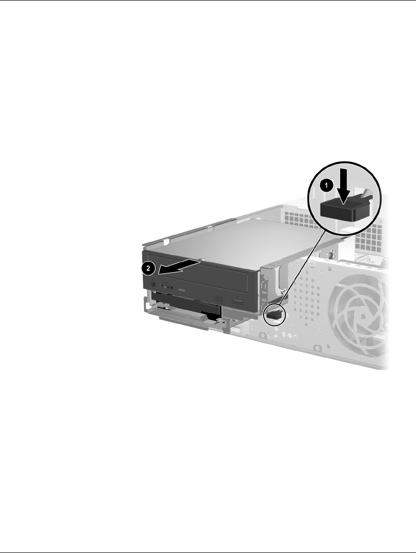 5. Deslice la caja de la unidad hacia adelante hasta que pare 2. Esta
