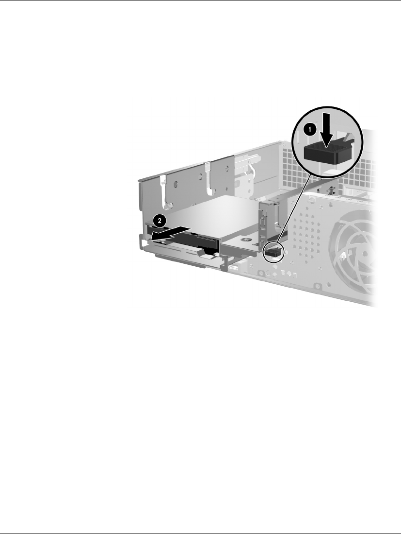 6. Deslice la caja de la unidad hacia adelante hasta que pare 2. Esta