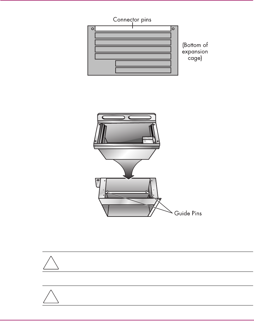 3. Locate the guide pins for alignment. Lower the expansion cage into the
