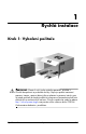 1 Rychlá instalace Krok 1: Vybalení počítače Å VAROVÁNÍ: Chcete-li snížit riziko vážného poran0ní, p5ečt0te si P íručku bezpečnosti a pohodlné obsluhy. Popisuje správné nastavení pracovní stanice, správné držení t0la a zdravotní a pracovní návyky pro uživatele počítač' a obsahuje d'ležité informace o bezpečném používání elektrických a mechanických za5ízení. P5íručku najdete na webu na adrese http://www.hp.com/ergo a na pevném disku nebo na disku CD-ROM Dokumentace dodaném s produktem.