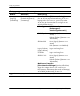 Setup-programmet Setup-programmet (Fortsättning) Rubrik Alternativ Security [Säkerhet] (fortsättning) OS Security [OS-säkerhet] (vissa modeller) Beskrivning • Data Execution Prevention [Förhindra exekvering av data] (vissa modeller) (aktivera/avaktivera) Hjälper till att förhindra obehörig åtkomst till operativsystemet. ✎ Det här alternativet fungerar endast om processorn och operativsystemet som används kan användas tillsammans med den här funktionen.