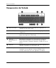 Recursos do Produto 8 Tecla com o Logotipo do Windows* Utilizada para abrir o menu Iniciar no Microsoft Windows. Utilizada em conjunto com outras teclas para executar outras funções. 9 Teclas Alt Utilizada em conjunto com outras teclas; seu efeito depende do software de aplicativo que está sendo usado. *Teclas disponíveis em regiões geográficas selecionadas.