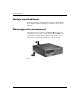 Hardwareopgraderinger Brug af SFF-computeren i en towerkonfiguration SFF-computeren kan bruges i en tower- eller desktopkonfiguration. Hvis computeren skal bruges i towerkonfiguration, skal den stilles på højre side som vist på illustrationen herunder. for, at der er mindst 10 cm fri plads på alle sider af computeren, ✎ Sørg uden forhindringer. Skift fra desktop- til towerkonfiguration kan købe et towerstativ fra HP, så computeren bliver mere stabil ✎ Du i towerkonfigurationen. 2–2 www.hp.