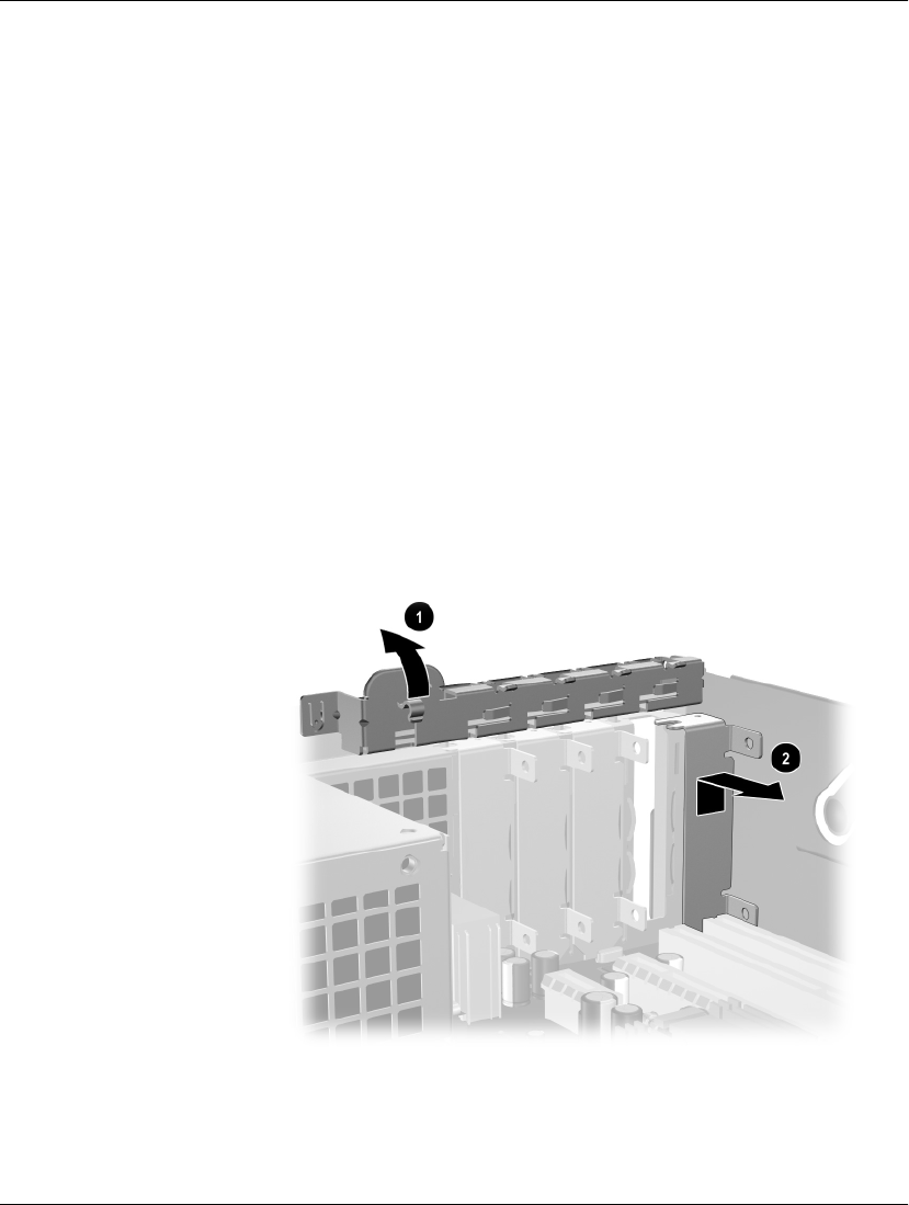 6. Uvoľnite svorku pre upevnenie krytov slotov PCI nadvihnutím