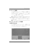 ポ イ ン テ ィ ン グ デバイ ス タ ッ チパ ッ ド の使用 ポインタを移動するには、タッチパッドの表面でポインタを移動したい 方向に指をスライドさせます。タッチパッドのボタンは、外付けマウス の対応するそれぞれのボタンと同様に機能します。タッチパッド垂直ス クロール ゾーンを使用して画面を上下にスクロールするには、スクロー ル ゾーンの線上で指を上下にスライドさせます。 ✎ ポインタの移動にタッチパッドを使用している場合、まずタッチパッド から指を離し、その後でスクロール ゾーンに指を置きます。タッチパッ ドからスクロール ゾーンへ指を動かすだけでは、スクロール機能はアク ティブになりません。 ポ イ ン テ ィ ング ステ ィ ッ ク の使用 (一部のモデルのみ) ポインタを移動するには、ポインティング スティックを移動したい方向 に向かって押しつけます。ポインティング スティックのボタンは、外付 けマウスの対応するそれぞれのボタンと同様に機能します。 ポ イ ン テ ィ ン グ デバイ スお よ びキーボー ド 1–3