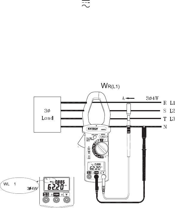 e. Connect the test probe of the V (red) terminal to the first phase (e.g. R or L1).