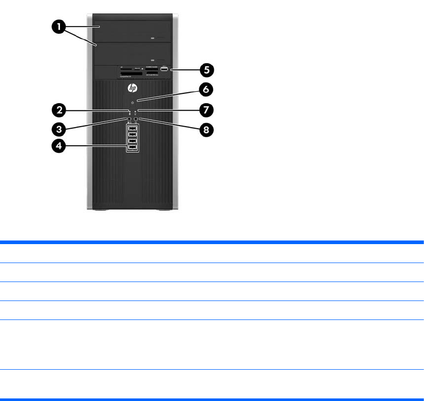 1 5,25palcové optické jednotky 5 3,5palcová čtečka karet médií (volitelná)