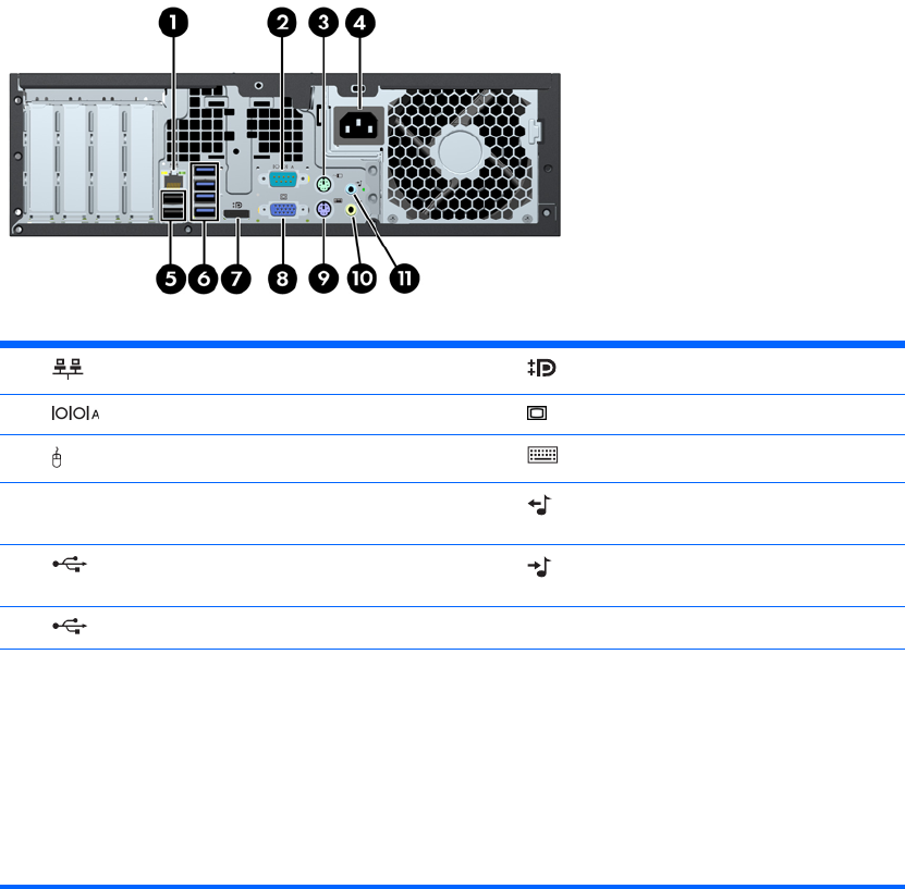 - Komponenty zadního panelu modelu Small Form Factor (SFF)