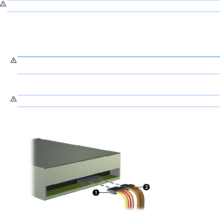 a. Pokud odstraňujete optickou jednotku, odpojte napájecí kabel (1) a datový kabel (2) ze
