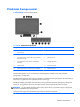 Šoniniai komponentai 1-3 Iliustracija Šoniniai komponentai 1-2 Lentelė Šoniniai komponentai Komponentas Komponentas 1 Standžiojo disko aktyvumo LED indikatorius 6 Optinis diskų įrenginys su dėklu 2 HP „šeši viename“ laikmenų kortelių skaitytuvas (pasirenkamas) 7 Optinio disko įrenginio išstūmimo mygtukas 3 (2) USB 3.