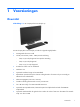 1 Voorzieningen Overzicht Afbeelding 1-1 HP Compaq All-in-One zakelijke pc De HP Compaq All-In One zakelijke pc biedt de volgende mogelijkheden: ● Geïntegreerd All-in-One model ● Full HD, LCD-scherm (1920 x 1080) met LED-verlichting ◦ 58,4 cm (23 inch) diagonaal met optische aanraking ◦ 58,4 cm (23 inch) diagonaal ◦ 54,6 cm (21,5 inch) diagonaal ● Draaikussen onder voet van standaard ● Instelbare voet ● Optioneel instelbare hoogte en leunstandaard ● Afneembaar paneel achterop het chassis