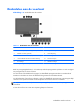 Onderdelen aan de voorkant Afbeelding 1-2 Onderdelen aan de voorkant Tabel 1-1 Onderdelen aan de voorkant Onderdeel Onderdeel 1 Webcam met privacy-afsluiter (optioneel) 7 Luidspreker dempen 2 Dubbele microfoon (optioneel) 8 Volumebeperking 3 LED voor webcam-activiteit (met optionele webcam) 9 Volume hoger 4 16:9 breedbeeld LCD-scherm met LED-verlichting 10 Microfoon dempen 5 Stroomlampje 11 Helderheid verlagen 6 Hoogwaardige stereoluidsprekers 12 Helderheid verhogen Raak het picto