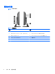 側面の各部 図 1-3 側面の各部 表 1-2 側面の各部 名称 4 名称 1 ハードディスク ドライブ動作ランプ 6 トレイ式オプティカル ディスク ドライブ 2 HP 6in1 メディア カード リーダー(オプション) 7 オプティカル ディスク取り出しボタン 3 USB 3.