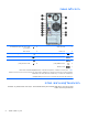 מיקומי הכוננים 1 תא כונן בגודל 5.25אינץ' במחצית גובה )מוצג כונן אופטי( 2 תא כונן במחצית גובה 5.25אינץ' 3 תא כונן בגודל 3.5אינץ' עבור כונן אופציונלי )מוצג קורא כרטיסי מדיה( 4 תא כונן קשיח פנימי ראשי 3.5אינץ' 5 תא כונן קשיח פנימי 3.5אינץ' משני הערה: תצורת הכונן במחשב שברשותך עשויה להיות שונה מתצורת הכונן המוצגת לעיל. כדי לוודא את הסוג והנפח של התקני האחסון המותקנים במחשב ,הפעל את ) Computer Setupהגדרות המחשב(.