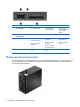 Onderdelen aan de voorkant De configuratie van de schijfeenheden kan per model verschillen. Op sommige modellen worden een of meer schijfposities afgedekt door een afdekplaatje. 1 5,25-inch optische schijf-eenheid (optioneel) 6 Microfoonconnector 2 5,25-inch half hoog stationscompartiment (achter paneel) 7 Lampje van de vaste schijf 3 3,5-inch mediakaartlezer (optioneel) 8 USB 3.0-poorten (blauw) 4 Aan/uit-knop met twee standen 9 Hoofdtelefoonconnector 5 USB 2.
