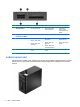 Posisi drive 1 Tempat drive setengah tinggi berukuran 5,25 inci (drive optik ditampilkan) 2 Tempat drive half-height (tinggi setengah) 5,25 inci 3 Tempat drive berukuran 3,5 inci untuk drive opsional (pembaca kartu media ditampilkan) 4 Wadah hard drive internal primer 3,5 inci 5 Tempat hard drive internal 3,5 inci sekunder CATATAN: Konfigurasi drive pada komputer Anda mungkin berbeda dengan konfigurasi drive yang ditampilkan di atas.