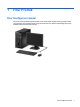 1 Fitur Produk Fitur Konfigurasi standar Fitur-fiturnya bisa berbeda tergantung pada model. Untuk daftar lengkap tentang perangkat keras yang terpasang dan perangkat lunak yang terinstal di komputer, jalankan utilitas diagnosis (hanya tersedia pada model komputer tertentu).