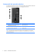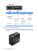 Componenti del pannello anteriore La configurazione dell'unità può variare a seconda del modello. Alcuni modelli sono dotati di un coperchietto del frontalino che protegge uno o più alloggiamenti dell'unità. 1 Unità ottica da 5,25" (opzionale) 6 Connettore microfono 2 Alloggiamento da 5,25" per unità disco rigido a mezza altezza (dietro il frontalino) 7 Spia attività disco fisso 3 Lettore di schede di memoria da 3,5" (opzionale) 8 Porte USB 3.