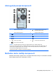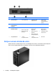 Priekšējā paneļa komponenti Diskdziņa konfigurācija var atšķirties atkarībā no modeļa. Dažiem modeļiem ir priekšējās fasetes ieliktnis, kas sedz vienu vai vairākus diskdziņu nodalījumus. 1 5,25 collu optiskais diskdzinis (izvēles) 6 Mikrofona savienotājs 2 5,25 collu pusaugstā diskdziņa nodalījums (aiz fasetes) 7 Cietā diska darbības indikators 3 3,5 collu datu nesēju karšu lasītājs (iegādājams atsevišķi) 8 USB 3.0 porti (zili) 4 Divstāvokļu strāvas poga 9 Austiņu savienotājs 5 USB 2.