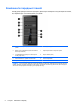 Компоненти передньої панелі Конфігурація привода залежить від моделі. Деякі моделі обладнано заглушкою фальш-панелі, що закриває одне чи кілька відділень для дисків. 1 5,25-дюймовий пристрій для читання оптичних дисків 6 Рознім для мікрофона 2 Відсік для 5,25-дюймового диска половинної висоти (за панеллю) 7 Індикатор активності жорсткого диска 3 3,5-дюймовий пристрій для читання картокносіїв (додатково) 8 Порти USB 3.