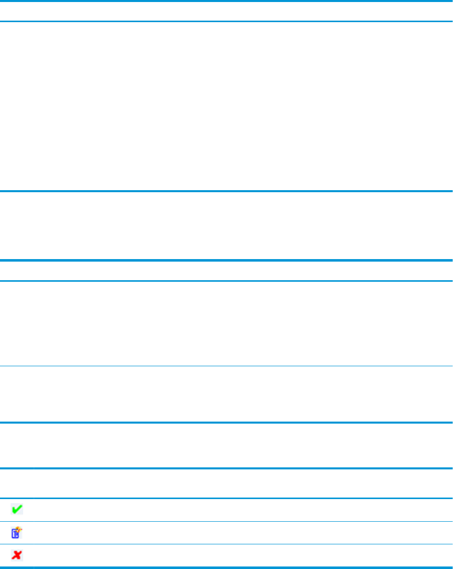 以下の表に、[HP Write Filter Conguration]ツールの除外一覧に使用されるアイコンを示します。