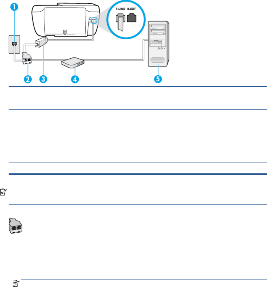 使用双线电话分离器、串行分离器或正面有两个 RJ-11 端口而背面是一个插头的并行分离器。