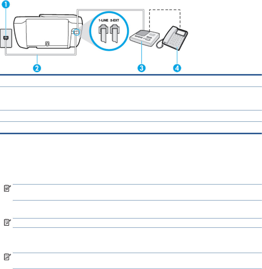2. 将应答机的插头从墙壁电话插孔中拔出,将其连接到打印机背面带有 2-EXT 标记的端口。