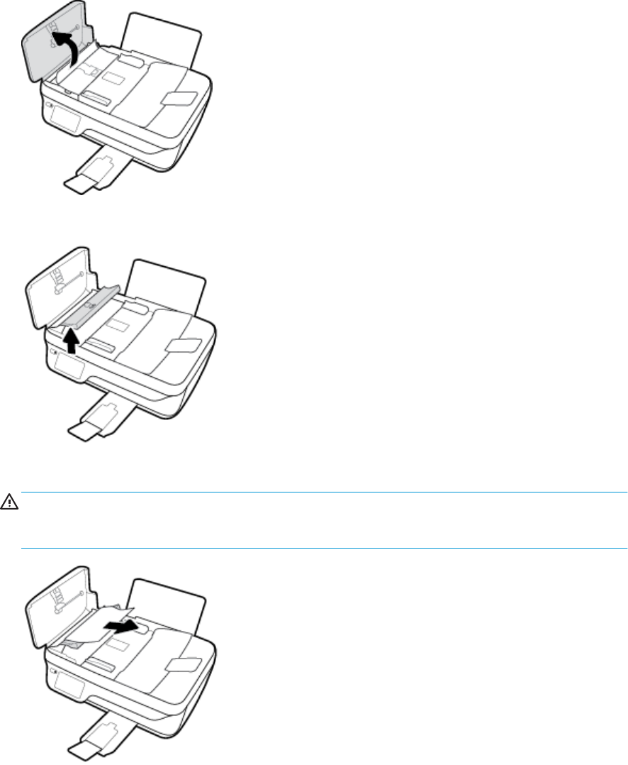 VIKTIGT: Om papperet rivs sönder när du tar bort det från valsarna ska du kontrollera att det inte
