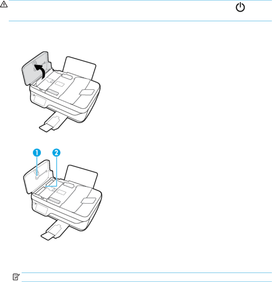 VARNING: Innan du rengör skrivaren stänger du av den genom att trycka på knappen Ström ( ) och dra